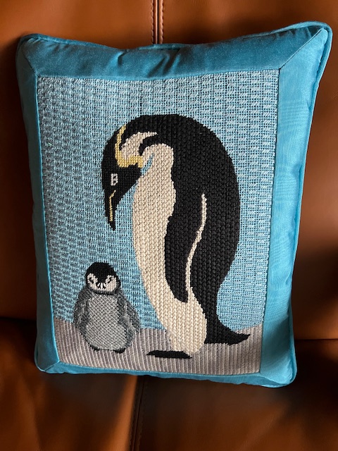 Needlepoint penguin pillow